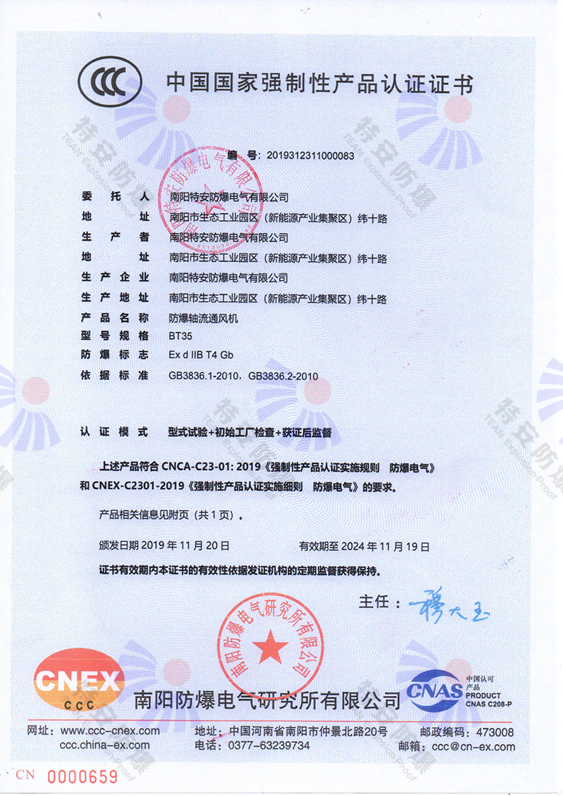 防爆軸流風(fēng)機(jī)中國國家強(qiáng)制性認(rèn)證證書(3C證書)