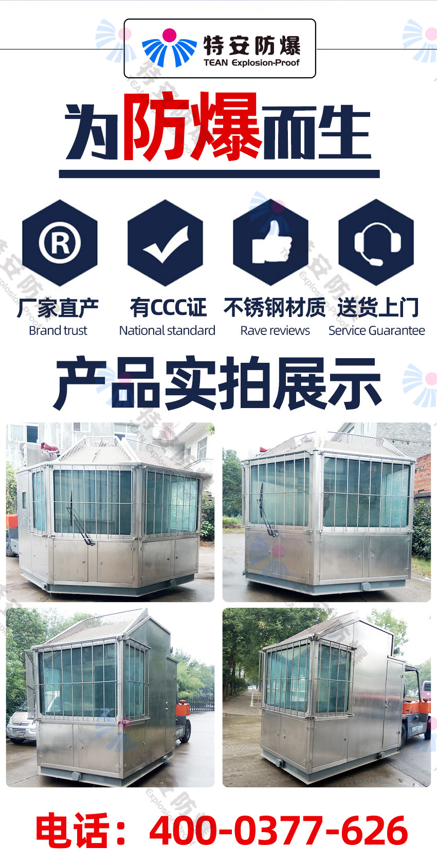 7.房體為不銹鋼材質(zhì),底座為普通鋼材,操作臺(tái)為不銹鋼結(jié)構(gòu),防爆電控箱,采用夾膠玻璃,頂層帶有可翻轉(zhuǎn)的防護(hù)不銹鋼絲網(wǎng),注意必須防水,前部和四周玻璃處均設(shè)安全防護(hù)欄。所有玻璃均安裝百葉窗(頂部除外)。